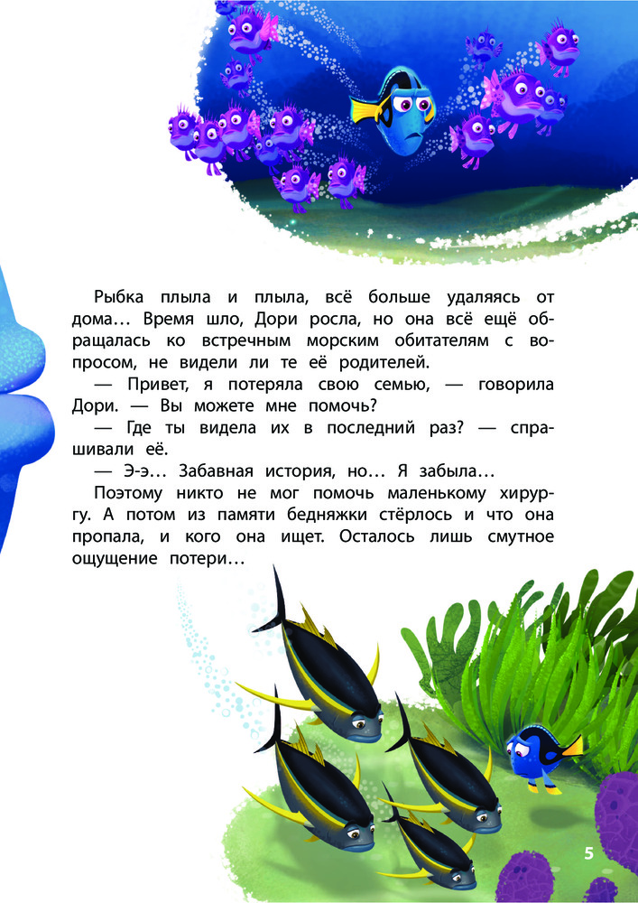 Невероятное, незабываемое путешествие Дори не оставит равнодушным ни детей, ни взрослых! Книга, иллюстрированная яркими картинками привлекает внимание с первых страниц. Дети легко читают и предсказывают содержание в том числе и благодаря иллюстрациям. Вполне подойдёт для детей и младше 6 лет. Старшего предела нет, так как сюжет достаточно интересен. Однозначно рекомендую к покупке на Флип!