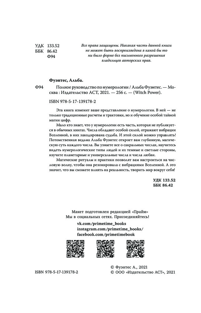 💳 Оплатить за товар можно при получении 🇰🇿 Есть бесплатная доставка по Казахстану 🎁 Копите бонусы с каждой покупки Серия: Witch Power Эта книга изменит ваше представление о нумерологии. В ней — не только традиционные расчеты и трактовки, но и обучение особой тайной магии цифр. Мало кто знает, что у нумерологии есть часть, которая не публикуется в обычных книгах. Числа обладают особой силой, отражают вибрации Вселенной, в них закодирована судьба. И этой силой можно управлять! Потомственная ведьма Альба Фуэнтес откроет вам глубинную, магическую суть каждого числа. Вы узнаете все о сакральных числах, научитесь видеть нумерологические типы людей и их темные и светлые стороны, изучите планетарные и универсальные числа и числа любви. |