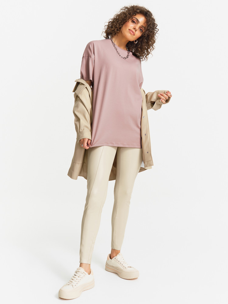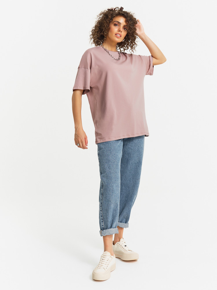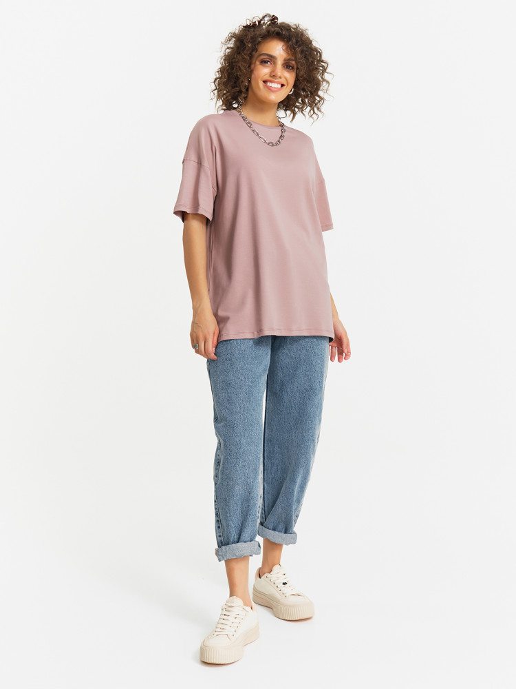 Очень классная футболка, материал просто супер. Но она сначала немного красилась (после двух стирок это прошло). И она оооочень оверсайз. Для модниц)