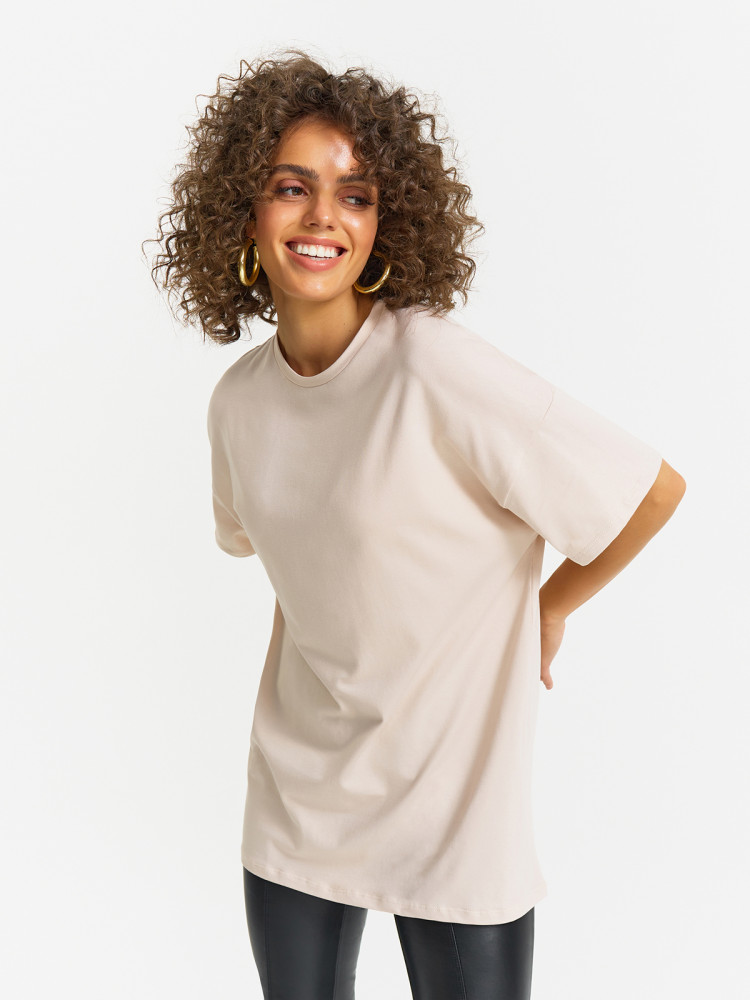Футболка oversize из мягкого хлопкового трикотажа обеспечивает комфорт на весь день благодаря свободной посадке, подойдет как для занятия спортом, так и для повседневной носки. Футболку в минималистичном стиле можно сочетать с любыми брюками, леггинсами, а также носить под худи.