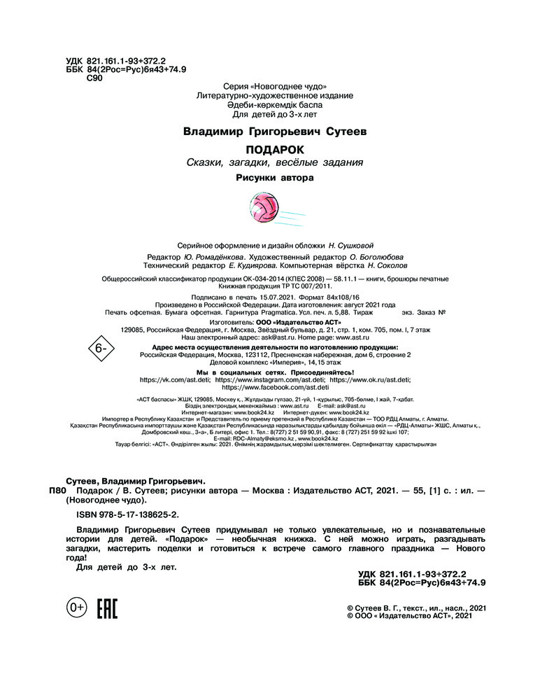 Серия: Новогоднее чудо Владимир Григорьевич Сутеев придумывал не только увлекательные, но и познавательные истории для детей. «Подарок» — необычная книжка. С ней можно играть, разгадывать загадки, мастерить поделки и готовиться к встрече самого главного праздника — Нового года! |