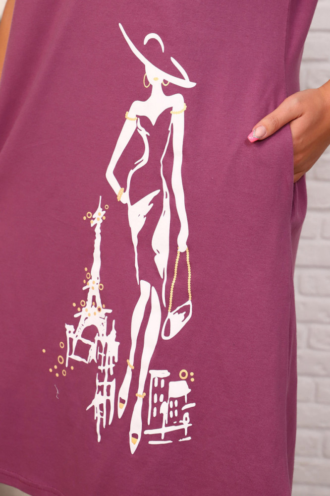 Хорошая домашняя туника . На рост 158-160 это скорее платье, чуть ниже колен. Материал футболочный трикотаж, мягкий. Цвет фиолетовый, не такой яркий, как на фото, темнее. Размер 52 на мне немного свободный, но для домашней одежды это даже хорошо. Карманы удобно расположены, в швах. Принт смотрится элегантно. Пошив качественный, строчки ровные, нитки подобраны в тон. Уже покупала туники, платья этого производителя, оставалась довольна. Одежда не садится после стирки, практически не линеят. Приобрела тунику с большой скидкой, потому обновление домашнего гардероба не выбило из финансовой колеи. Спасибо Флип КЗ за качественное обслуживание.