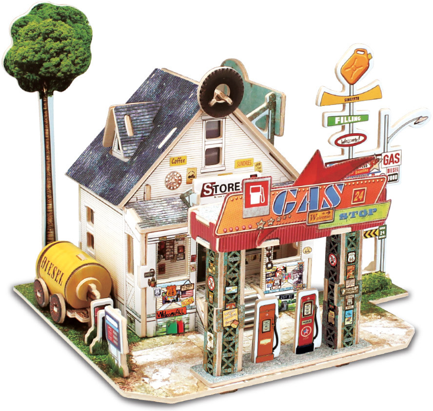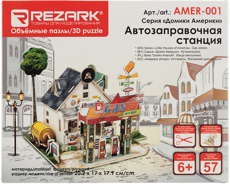 Rezark Пазл 3D «Автозаправочная станция»В данный момент этот товар отсутствует в продаже. Возможно, у нас найдется аналогичный или похожий товар здесь. Серия: Домики Америки Серия «Домики Америки» — это объемные 3D пазлы из фанеры 3 мм с нанесенным на нее принтом. Чтобы придать красочный вид модели, производитель использует специальное оборудование, которое склеивает цветную картинку с листом фанеры. Цветная печать в наборах высокого качества, хорошо проработана детализация рисунка даже в мелких частях модели. Технология сборки: все наборы скрепляются между собой при помощи пазов. При сборке не требуются клеевые материалы. В набор входят детали для вырезания. В комплекте имеется подробная инструкция по сборке на русском языке, которая будет понятна и взрослому и ребенку. Ребенок получает не только интересный подарок, но и познает что-то новое. Каждый набор содержит небольшую познавательную историю, в которой говорится о жителях, их традициях и других интересных фактах. |