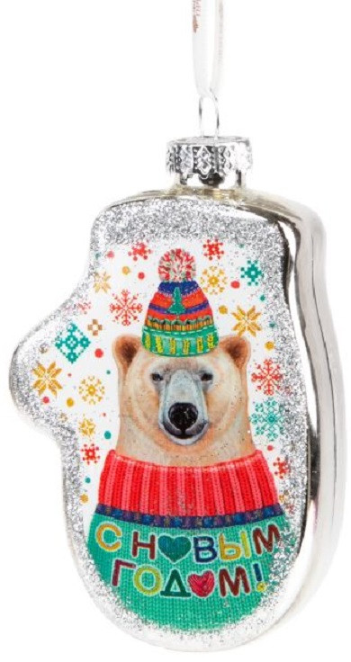 Задняя часть — глянцевая серебряная. По контуру рисунок деколи украшается серебристыми блестками, напоминающими иней. Для закрепления на елке имеется петелька из блестящего шнура. Каждая елочная игрушка представлена в красивой индивидуальной коробке, так что елочное украшение может служить не только декором новогодней хвойной красавицы, но и вариантом для подарка родным и близким.