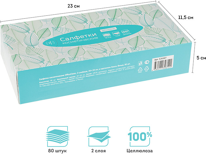 OfficeClean Салфетки косметические+26 мягкость удобная упаковка тонкость ткани впитываемость хлопковые волокна