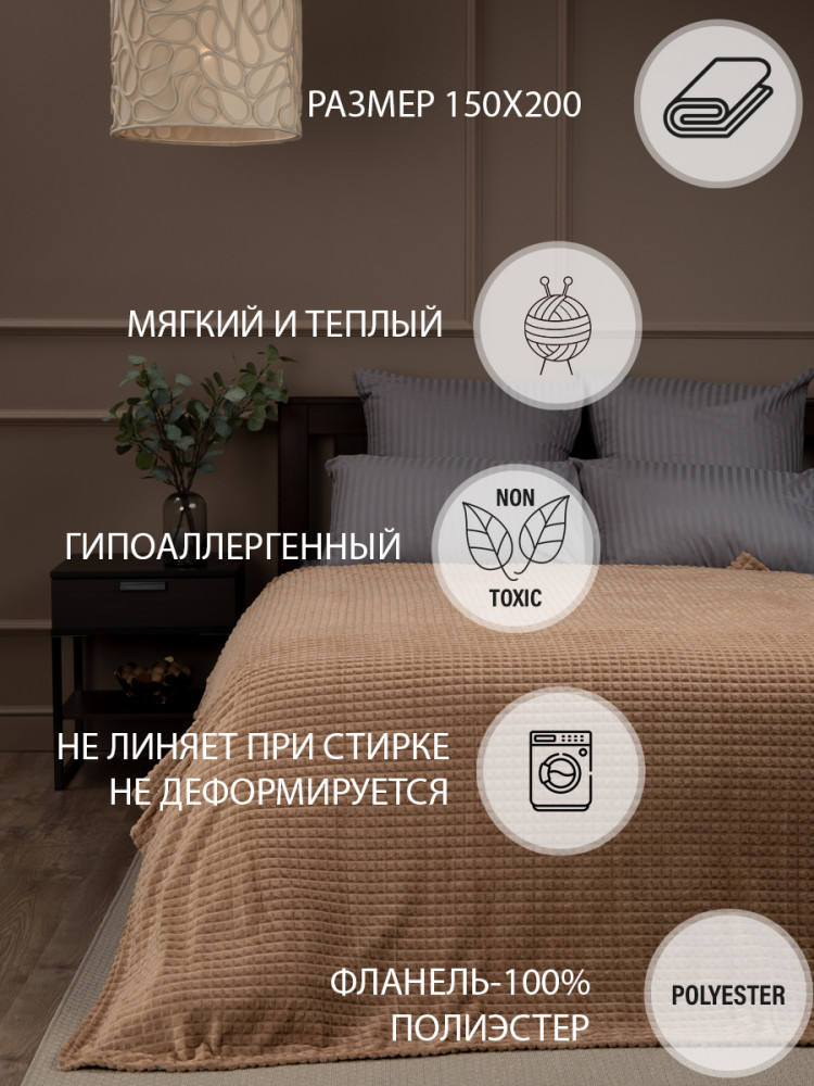 Пледы из фланели «Deco» торговой марки «TexRepublic» — яркие, легкие и необыкновенно мягкие. Разнообразие расцветок дает возможность добавить индивидуальности любому интерьеру. Ткань выполнена из 100% полиэстера по новейшей технологии. Процесс расщепления волокна и дополнительные расчесывания делают эти пледы особенно воздушными и сохраняет опрятный внешний вид изделия в течение долгого времени.