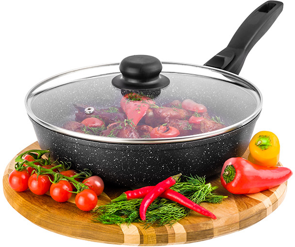 Elan Gallery Сковорода глубокая «Черный мрамор»В данный момент этот товар отсутствует в продаже. Возможно, у нас найдется аналогичный или похожий товар здесь. Серия: Гармония вкуса Сковорода глубокая диаметром 24 см серии «Гармония вкуса» с крышкой подойдет для жарки и тушения блюд из овощей, мяса и рыбы. Выполнена из лучших материалов и разработана специально для вашего удобства: обладает антипригарным покрытием. Имеет индукционное дно и эргономичную форму. Изготовлена из литого алюминия в России. Антипригарное покрытие Duramax полностью безопасно: не содержит PFOA, свинца, кадмия и любых других вредных веществ. Загрязнения на сковороде после готовки отмываются без усилий. Не нагревать без продуктов. Дайте посуде остыть, прежде чем помещать ее в воду. Использовать только деревянные и силиконовые лопатки. Не мыть с применением абразивных моющих средств. Использовать в посудомоечной машине только в режиме «Эко». Можно использовать в духовом шкафу без ручки и крышки при температуре до 250 градусов. Не доставать раскаленную сковороду ручкой. При соблюдении всех рекомендаций сковорода с антипригарным покрытием гарантирует комфорт и легкость в эксплуатации! |