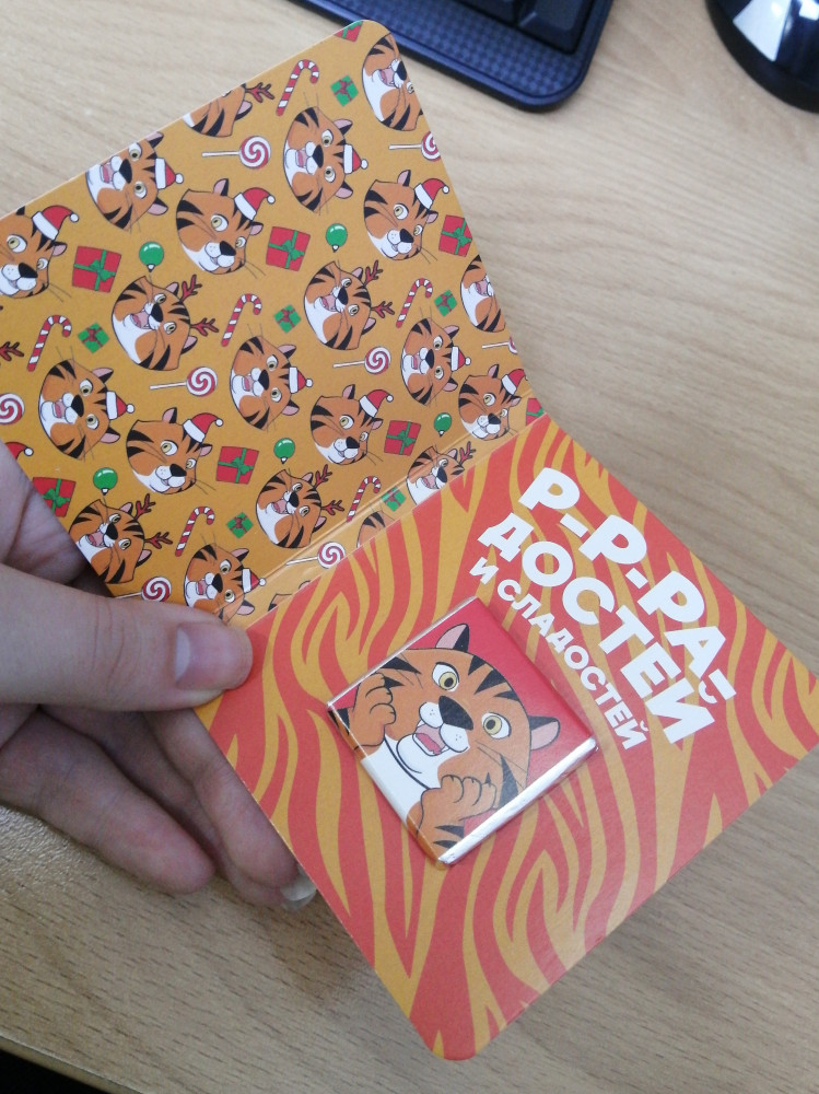 Открытка прикольная, шоколадка конечно чисто символическая, маленькая