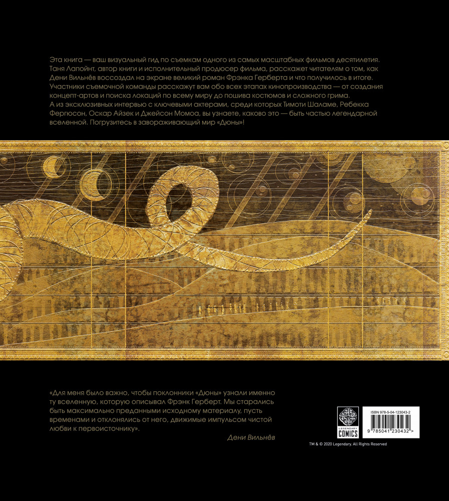 Серия: Подарочные издания. Кино Эта книга — Ваш визуальный гид по съемкам одного из самых масштабных фильмов десятилетия. Таня Лапойнт, автор книги и исполнительный продюсер фильма, расскажет читателям о том, как Дени Вильнёв воссоздал на экране великий роман Фрэнка Герберта и что получилось в итоге. Участники съемочной команды расскажут вам обо всех этапах кинопроизводства — от создания концепт-артов и поиска локаций по всему миру до пошива костюмов и сложного грима. А из эксклюзивных интервью с ключевыми актерами, среди которых Тимоти Шаламе, Ребекка Фергюсон, Оскар Айзек и Джейсон Момоа, Вы узнаете, каково это — быть частью легендарной вселенной. Погрузитесь в завораживающий мир «Дюны»! |