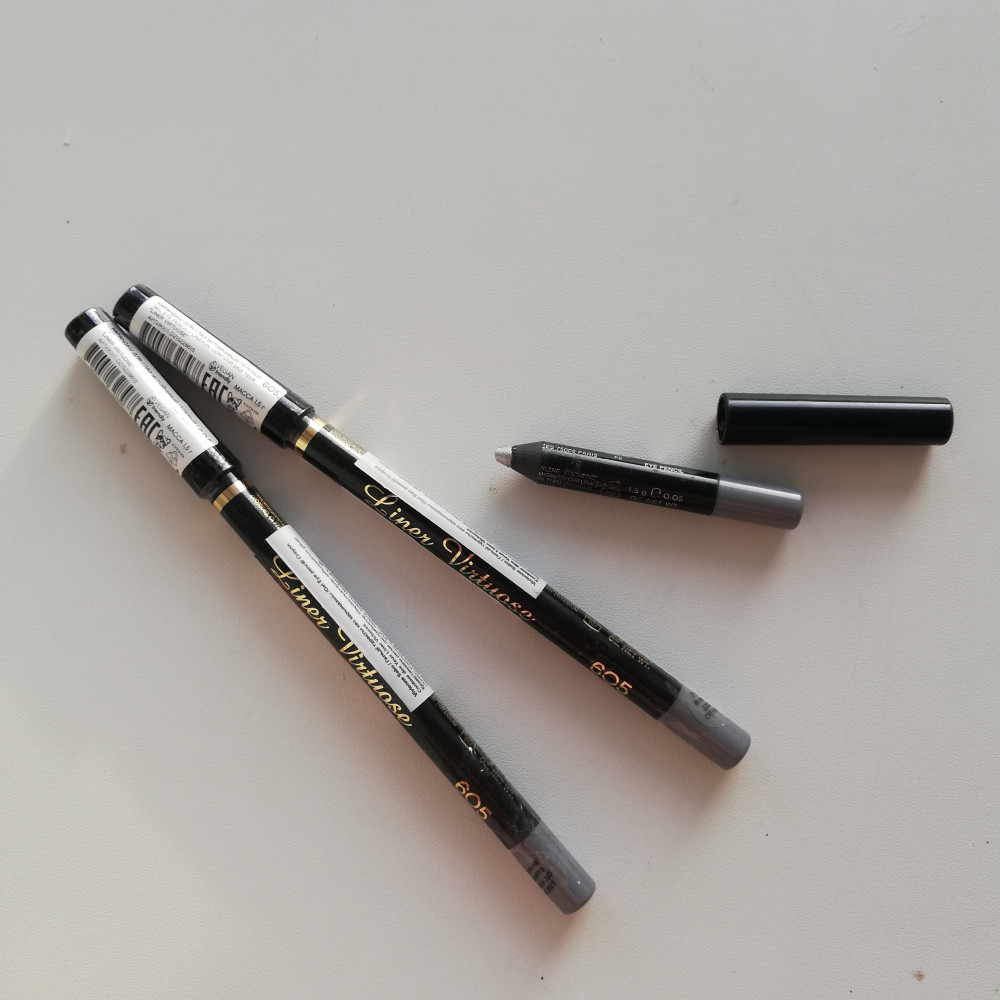 Самые лучшие карандаши!! Взяла уже 3 штуки. Цвет насыщенный серебряный. Стойкость отличная, возможно из-за гелевой текстуры. Поправляю немного макияж в обеденное время и хватает на весь день! Точится отлично, грифель не ломается! Перепробовала много других вариантов, это определённо фаворит! Спасибо! ❤️