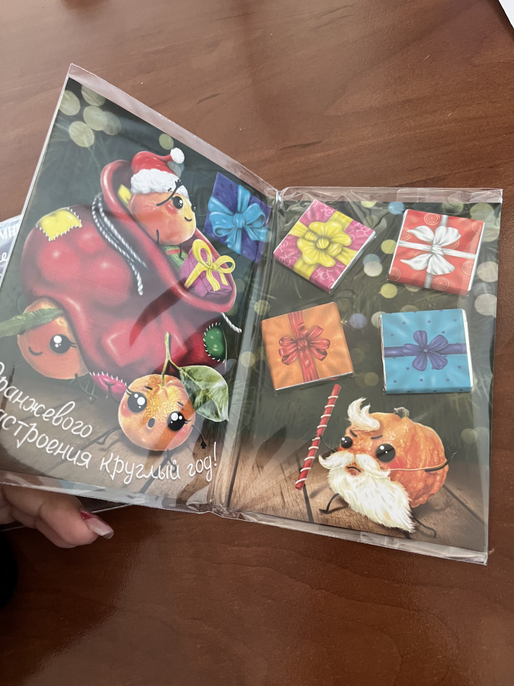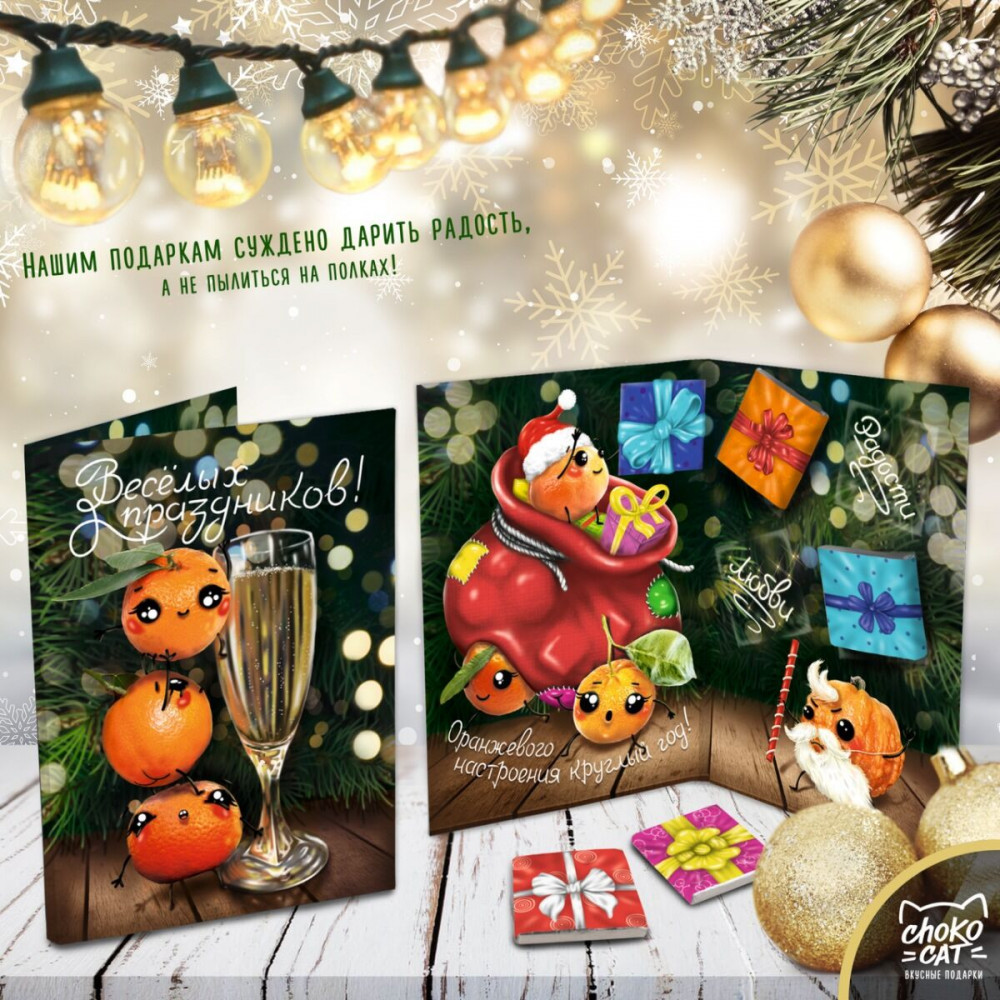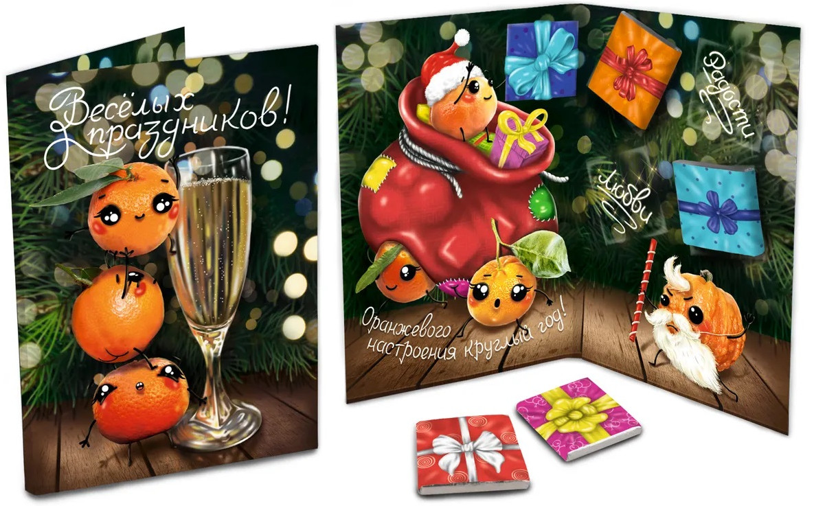 ChokoCat Открытка с шоколадом «Мандаринки поздравляют»В данный момент этот товар отсутствует в продаже. Возможно, у нас найдется аналогичный или похожий товар здесь. Серия: Открытки Яркая и современная открытка, внутри которой четыре молочных шоколадки по 5 граммов. Шоколадки обёрнуты в индивидуальные этикетки, каждая имеет иллюстрацию и надпись в тематике набора. Сам шоколад изготовлен из бельгийского качественного сырья, в составе от 36,8% сухого остатка какао. Пусть Новый год откроет новые горизонты в жизни и наполнит её приятными событиями! |