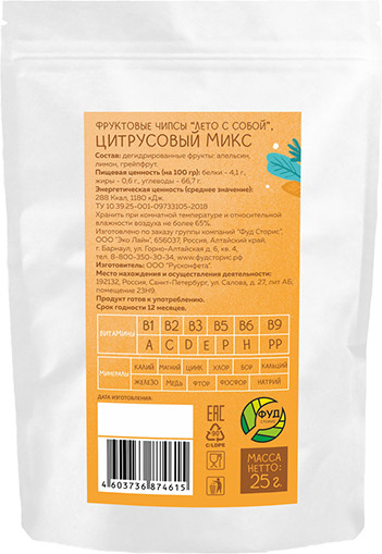 Фуд Сторис Чипсы фруктовые «Цитрус»