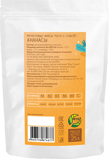 Фуд Сторис Чипсы фруктовые «Ананас»