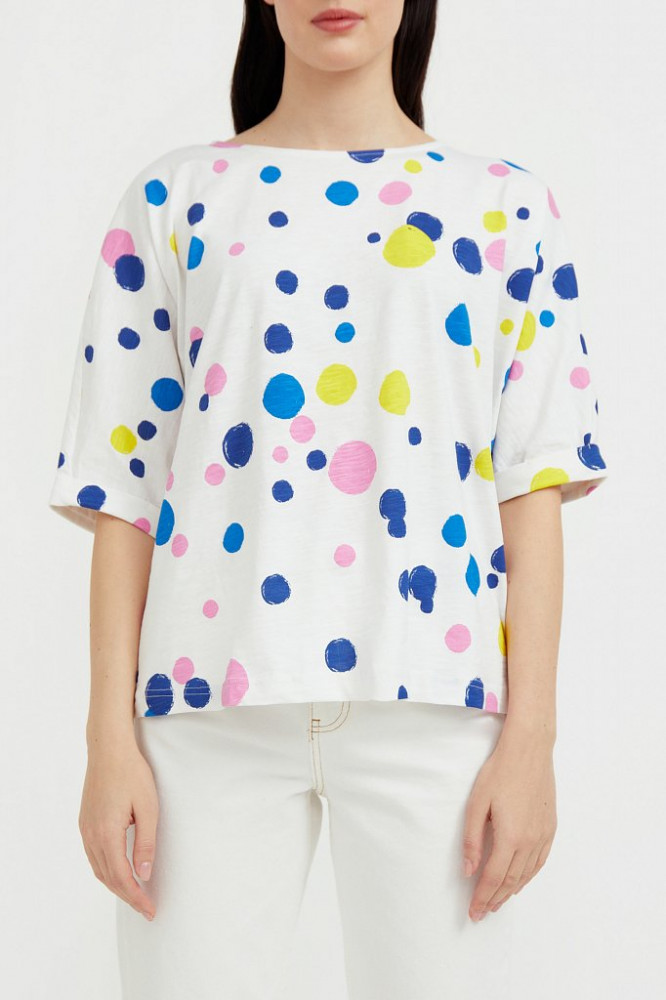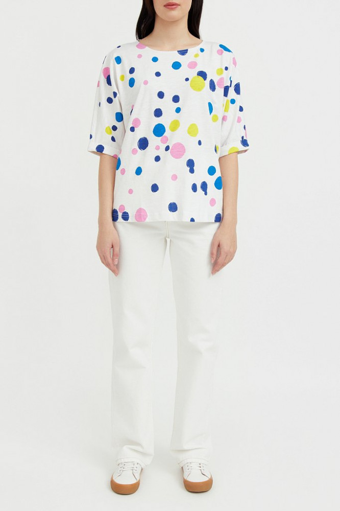 футболка симпатичная, но размер не знаю насколько оверсайз, заказывала 54, а там наверное 64 размер, обернуться в два раза можно, соответственно отказ