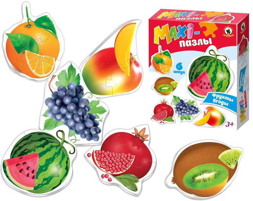 Русский стиль Пазл «Фрукты-ягоды»В данный момент этот товар отсутствует в продаже. Возможно, у нас найдется аналогичный или похожий товар здесь. Серия: Maxi-пазлы Игры серии «Maxi-пазлы» — одна из самых любимых игр для малышей! В комплекте 6 пазлов с изображением аппетитных ягод и фруктов. Малыши изучат ягоды, фрукты и их сочные половинки. Изображения на пазлах яркие и натуралистичные. Пазлы выполнены из качественного картона и имеют разное количество деталей: от 2 до 4. Детали Макси-пазлов крупные, их удобно держать в руках. Эти пазлы подойдут для малышей, которые с радостью соберут состоящий из двух половинок арбуз, так и детям постарше, готовым собирать пазлы из 3-4 частей. Собирайте пазлы — это прекрасная возможность провести время с пользой! |