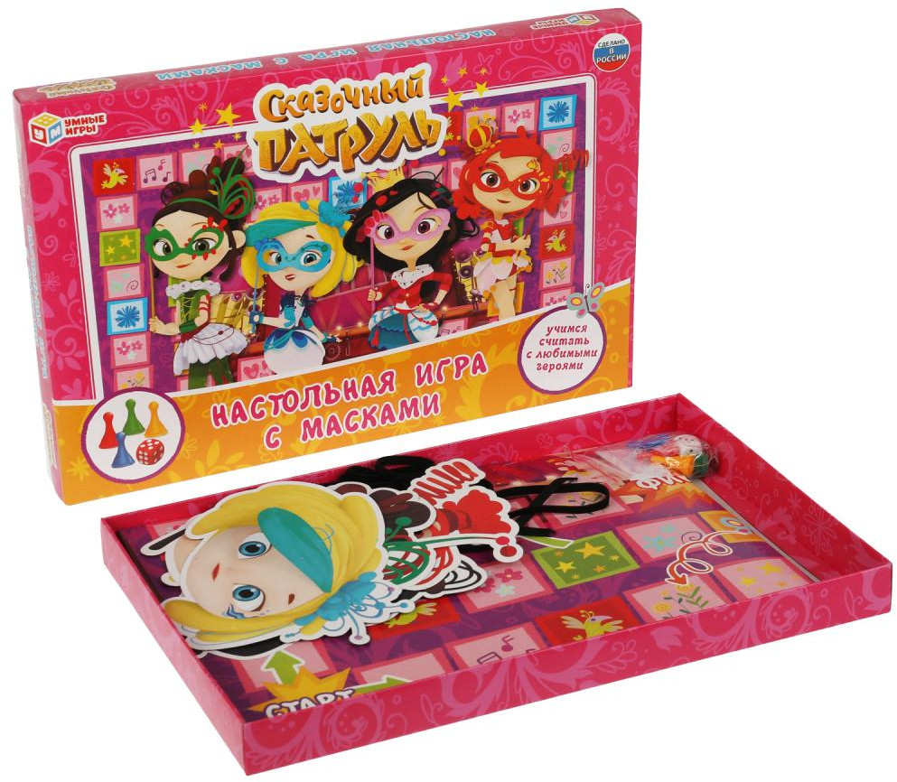 Настольная игра-ходилка «Сказочный патруль. Настольная игра с масками» ТМ «Умные игры» – это увлекательное путешествие в мир цифр вместе с любимыми героями.
