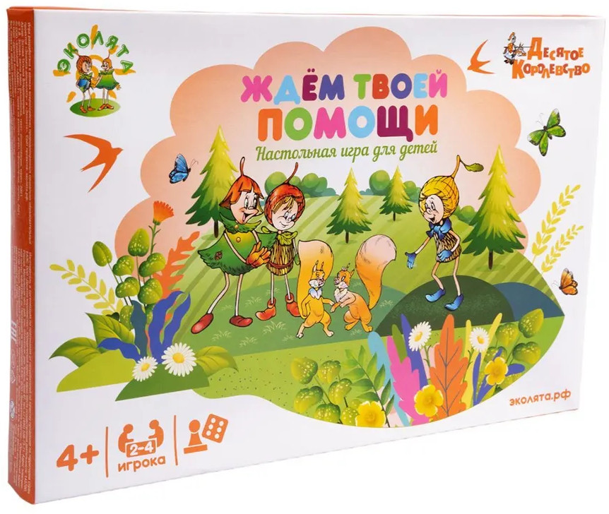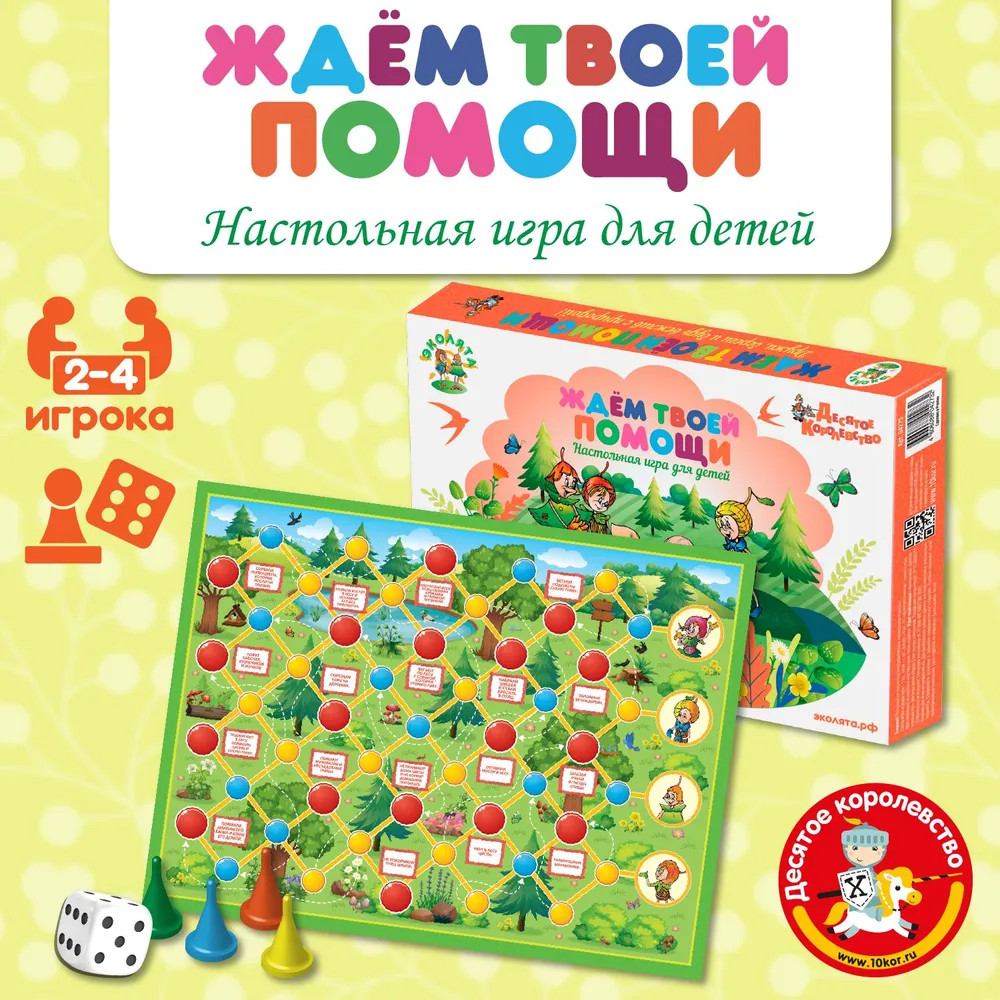 Серия: Игротека Эколят Детская настольная игра «Ждём твоей помощи» учит малышей бережно относиться к окружающей среде, тренирует мелкую моторику рук, логику, память и приучает к ответственности и дисциплине. Игра предназначена для детей от 4 лет и рассчитана на 2-4 игроков. Кидайте кубик и совершайте добрые поступки для сохранения природы. Окажите помощь лесу и его обитателям!