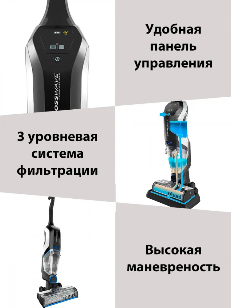 Моющий пылесос необходим в Вашем доме, если Вы любите идеальную чистоту, у Вас есть дети и домашние питомцы. С его помощью Вы сможете провести эффективную уборку дома, сэкономив время. Он позволит очистить не только пол, но и ковровые покрытия, эффективно избавив от шерсти животных. Вертикальный пылесос «Bissell» относится к категории моющих пылесосов, который способен одновременно собирать с напольного покрытия мусор и пыль, мыть его и сушить.