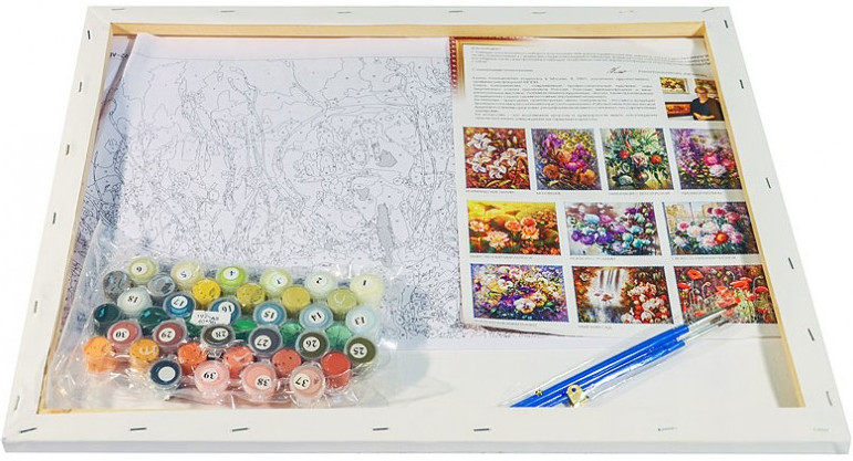 Внимание! Краски могут подсохнуть или быть слишком густыми — это не является браком, в этом случае добавьте небольшое количество воды и хорошо размешайте краску. Рекомендуем раскрашивать картину без длительных перерывов, чтобы краска в баночках не высыхала.