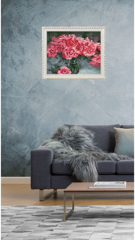 Белоснежка Мозаика алмазная на подрамнике «Розовые пионы»-25%