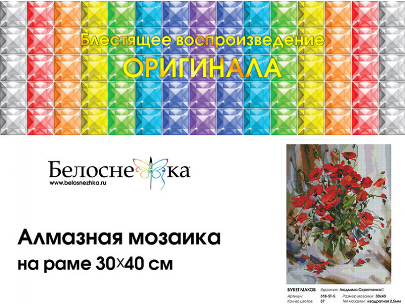 Белоснежка Мозаика алмазная «Букет маков»-25%