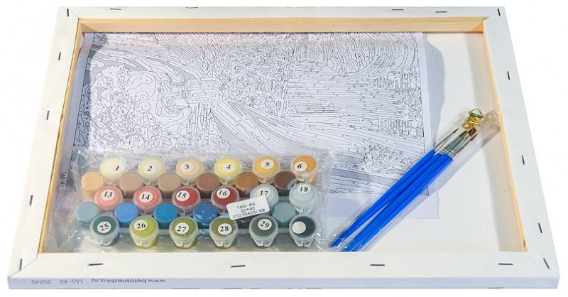 Серия: Животные В этом наборе вы найдете холст на подрамнике, на который нанесены контуры рисунка, а также числа, указывающие на цвет, которым должна быть закрашена та или иная часть картины. Наносите краску нужного цвета на холст при помощи кисти, сверяясь с контрольной схемой. Это спокойное, неторопливое занятие подойдет и ребенку, и взрослому, к тому же оно помогает развить цветовосприятие, аккуратность и художественный вкус. |