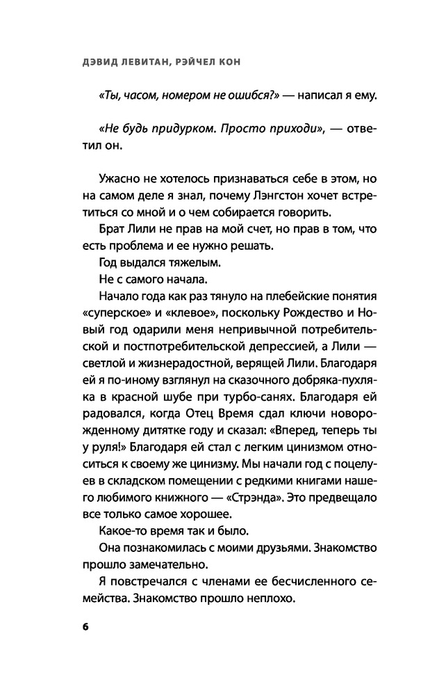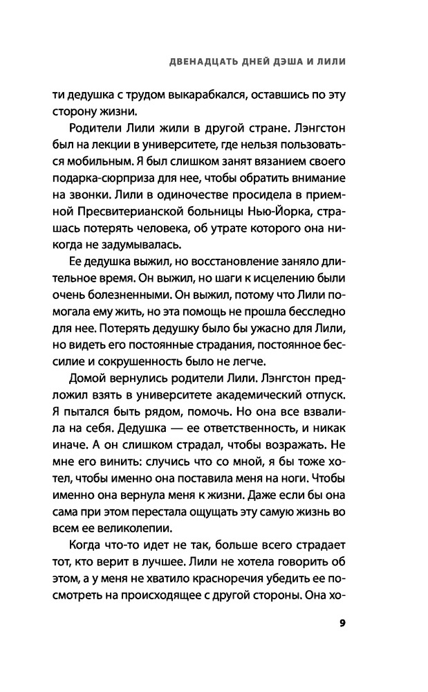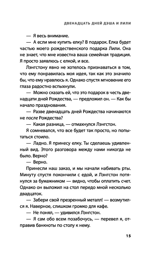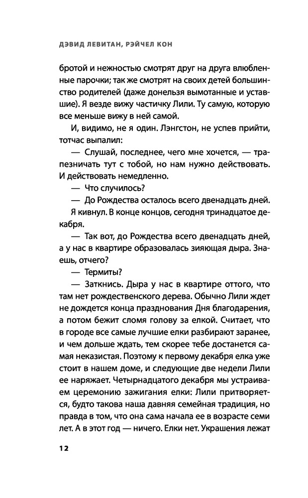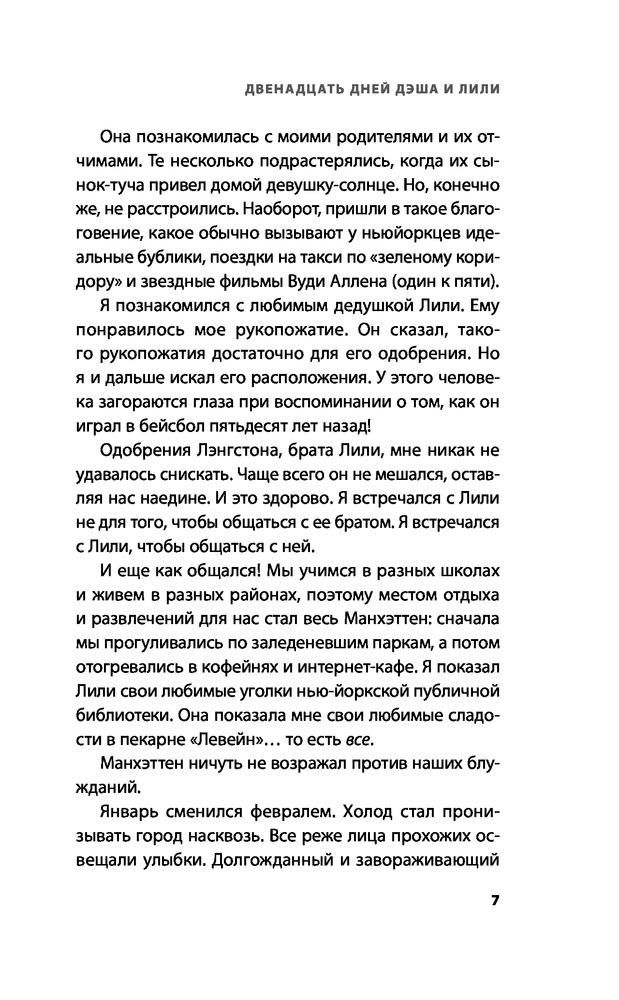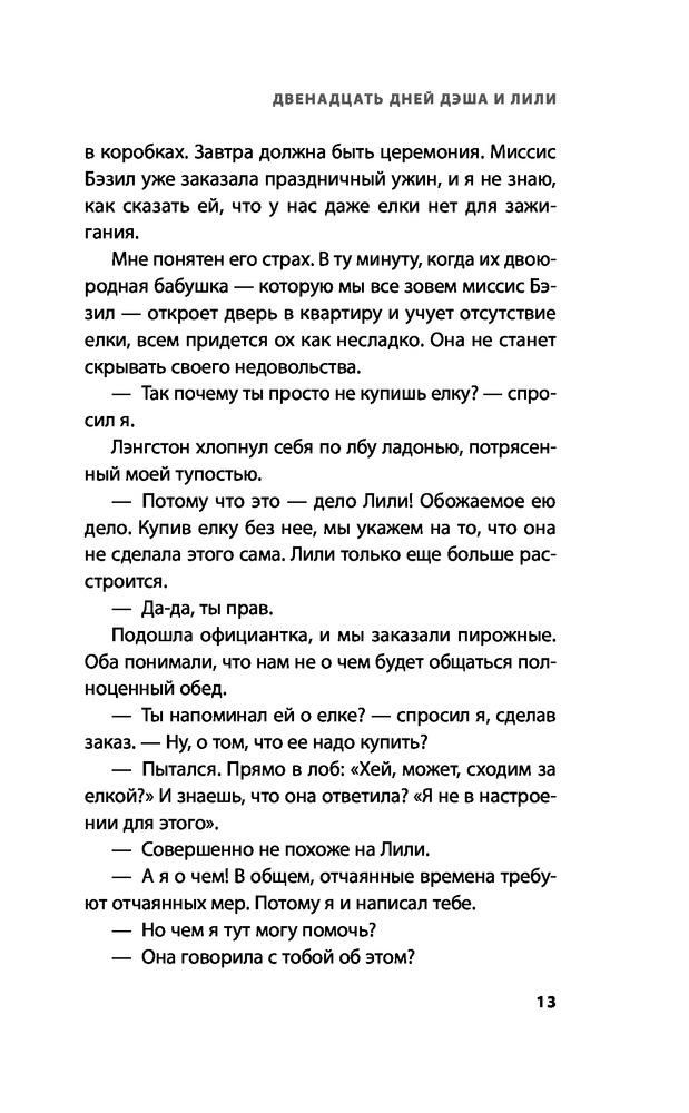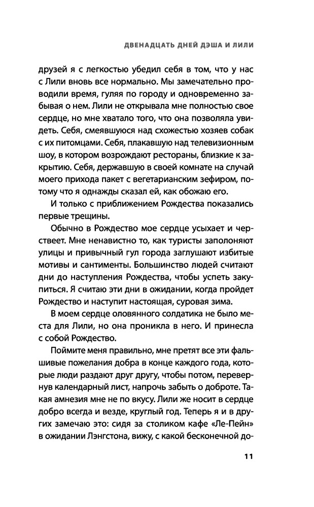Двенадцать дней Дэша и ЛилиВ данный момент этот товар отсутствует в продаже. Возможно, у нас найдется аналогичный или похожий товар здесь. Серия: Young Adult. Дэш и Лили от Netflix Прошел год с тех пор, как Дэш нашел записную книжку с головоломками, которую оставила Лили. Благодаря этой жизнерадостной девушке он встретил лучшее Рождество в своей жизни. Снова приближаются новогодние каникулы, но радость Лили омрачила тяжелая болезнь ее дедушки. Она так расстроилась, что даже забыла купить елку. К тому же в отношениях с Дэшем появилась трещина, и они начинают отдаляться друг от друга. До Рождества осталось всего двенадцать дней, и Дэшу предстоит сделать невозможное. Он должен не только подарить Лили настоящее праздничное настроение, но и вернуть любовь. |