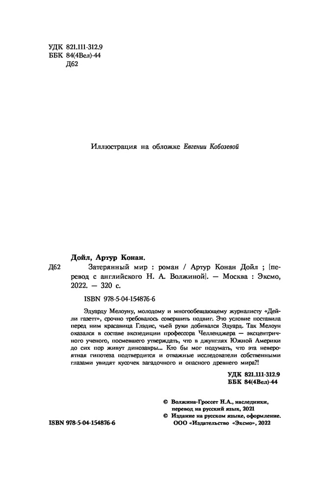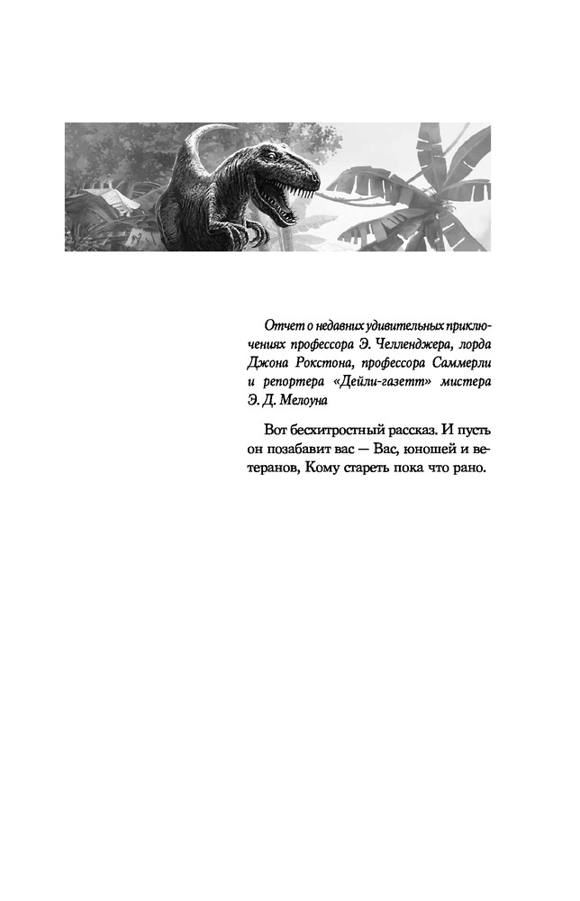 В данный момент этот товар отсутствует в продаже. Возможно, у нас найдется аналогичный или похожий товар здесь. Серия: Детск. Истории о динозаврах Эдуарду Мелоуну, молодому и многообещающему журналисту «Дейли-газетт», срочно требовалось совершить подвиг. Это условие поставила перед ним красавица Глэдис, чьей руки добивался Эдуард. Так Мелоун оказался в составе экспедиции профессора Челленджера — эксцентричного учёного, посмевшего утверждать, что в джунглях Южной Америки до сих пор живут динозавры... Кто бы мог подумать, что эта невероятная гипотеза подтвердится, и отважные исследователи собственными глазами увидят кусочек загадочного и опасного древнего мира?! |