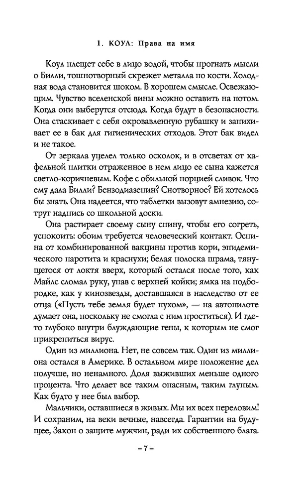 Серия: Universum. Технотриллер Вирус Калгоа выкосил почти все мужское население Земли. Но мир женщин оказался совсем не мирным: террористки-фанатички, черный рынок спермы и процветание принципа «выживает сильнейший». |