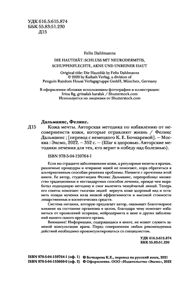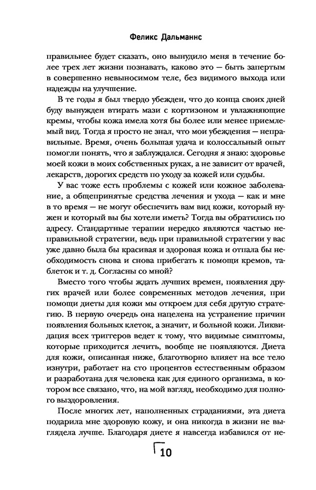 Если вы страдаете заболеваниями кожи, а регулярные визиты к врачам, различные процедуры и втирание мазей не помогают, пора обратиться к альтернативным способам решения проблемы. Начните с прочтения этой книги. Ее автор, студент-медик Феликс Дальманнс, перепробовал множество традиционных и нестандартных способов лечения, прежде чем выработал подходящую методику и смог вылечить чешуйчатый лишай. Теперь его советы помогают тысячам людей вернуть коже здоровый вид и оставить позади мучения из-за низкой эффективности и высокой стоимости лекарственных и косметических средств.