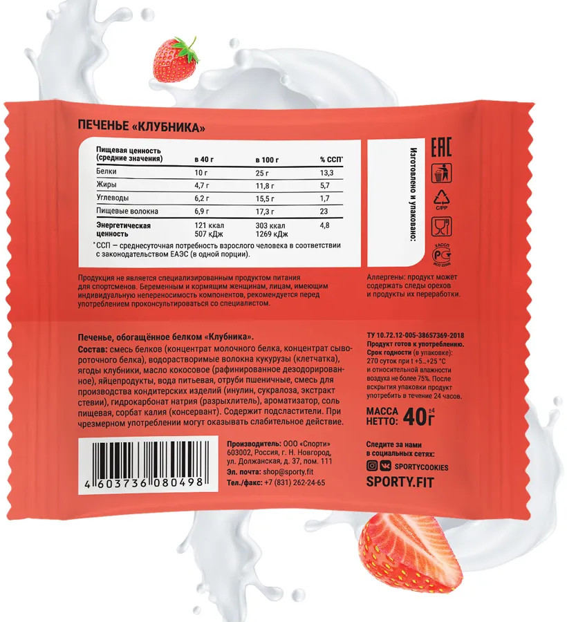 Sporty Печенье протеиновое без сахара «Клубника»