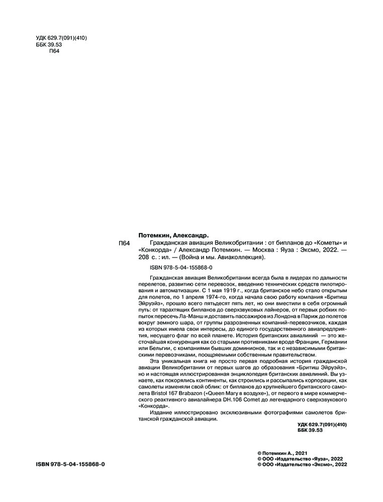 Гражданская авиация ВеликобританииВ данный момент этот товар отсутствует в продаже. Возможно, у нас найдется аналогичный или похожий товар здесь. Серия: Война и мы. Авиаколлекция Гражданская авиация Великобритания всегда была в лидерах по дальности перелетов, развитию сети перевозок, введению технических средств пилотирования и автоматизации. С 1 мая 1919 г., когда британское небо стало открытым для полетов по 1 апреля 1974-го, когда начала свою работу компания «Бритиш Эйруэйз», прошло всего пятьдесят пять лет, но они вместили в себя огромный путь от тарахтящих бипланов до сверхзвуковых лайнеров, от первых робких попыток пересечь Ла-Манш и доставить пассажиров из Лондона в Париж до полетов вокруг земного шара, от группы разрозненных компаний-перевозчиков, каждая из которых имела свои интересы, до единого государственного авиапредприятия, несущего флаг по всей планете. История британских авиалиний — это жесточайшая конкуренция, как со старыми противниками вроде Франции, Германии или Бельгии, с компаниями бывших доминионов, так и с независимыми британскими перевозчиками, поощряемыми собственным правительством. |