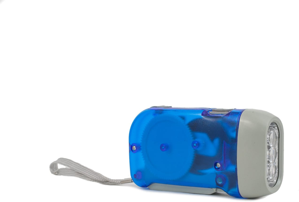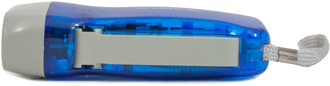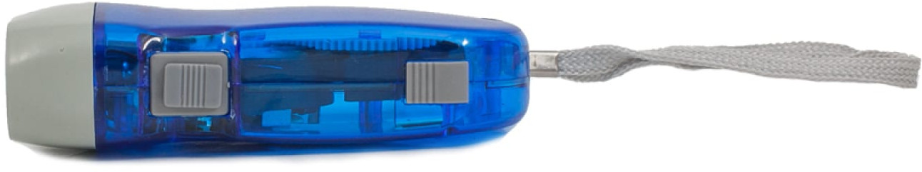 Отличный фонарик. Чтобы зарядить его, достаточно сдвинуть защитный рычажок и пару минут легко посжимать специальный рычаг по типу спортивного эспандера. Светит очень прилично. На сколько по времени хватает заряда, пока не знаю. Но, даже если разрядится, можно тут же понажимать снова и будет светить. Отличная штука, не требующая батареек и электрической зарядки!
