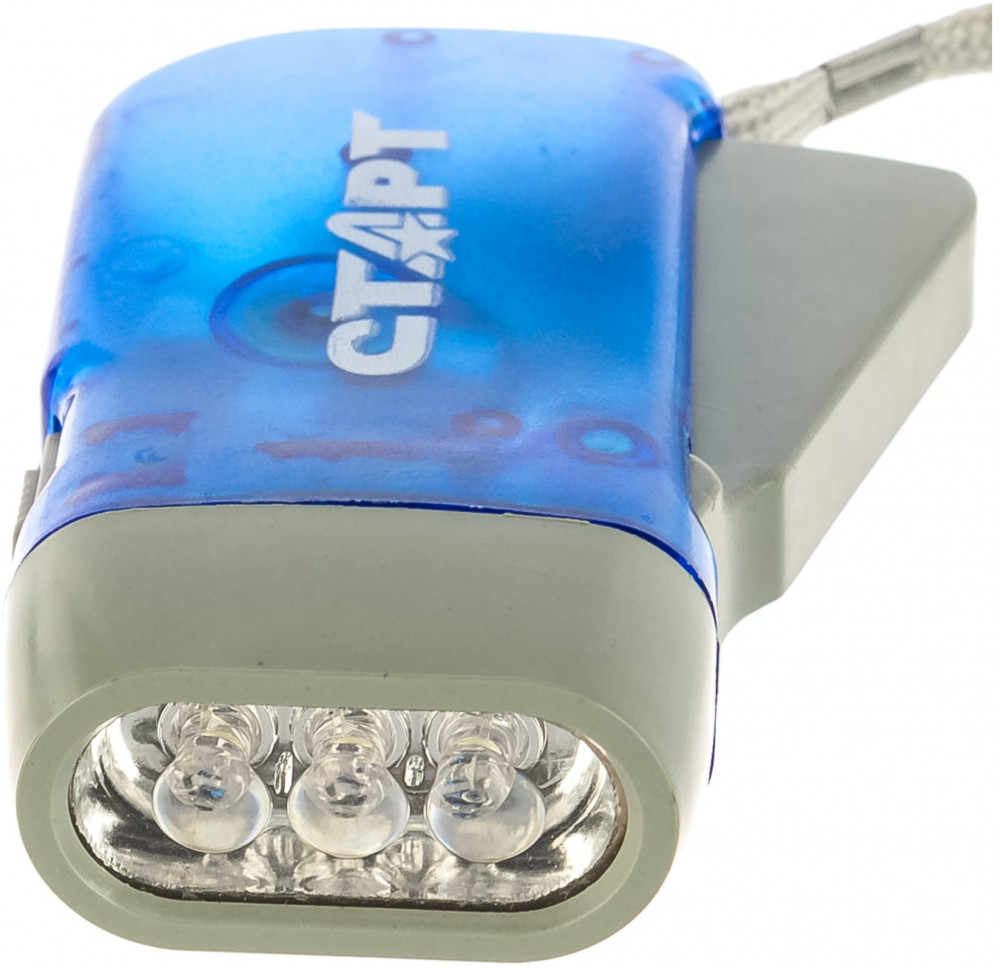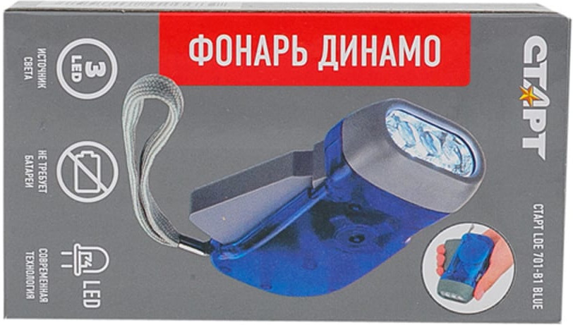 Старт Фонарь-динамо Старт LDE 701-B1В данный момент этот товар отсутствует в продаже. Возможно, у нас найдется аналогичный или похожий товар здесь. Стильный фонарь из тёмно-синего полупрозрачного пластика относится к динамо-устройствам — для его подпитки не нужны батарейки: несколько часов непрерывной работы обеспечено многократными нажатиями на специальный удобный рычажок. |