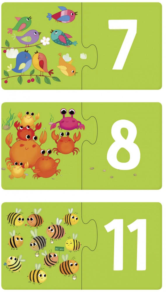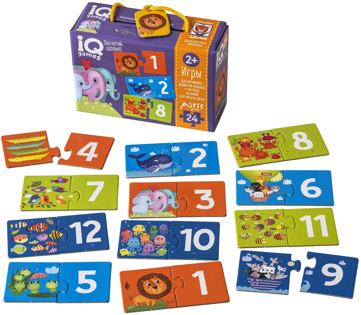 Серия: IQ игры Набор включает 12 пазлов, состоящих из двух частей. Задача игры — составить пару: цифра и соответствующее количество предметов. Ребёнок будет учиться считать, тренировать мелкую моторику и мышление. На отдельном листе-вкладыше дана система заданий для запуска речи. Они позволят устроить интересную игру даже с ещё не говорящими детьми. |