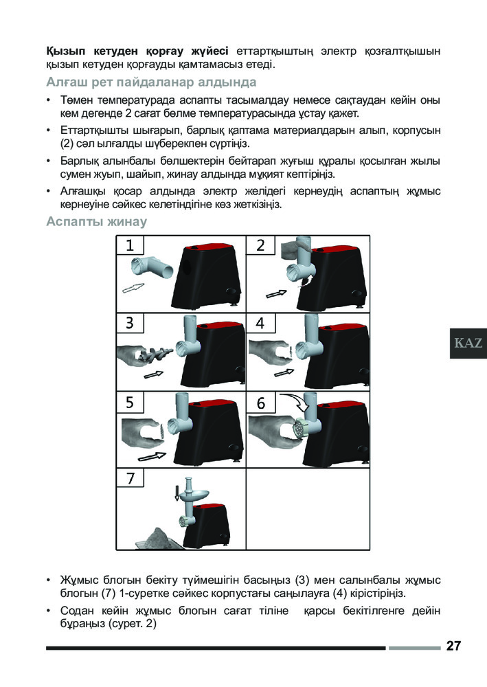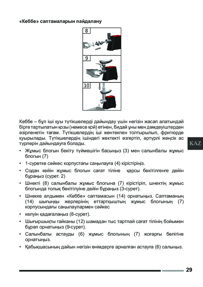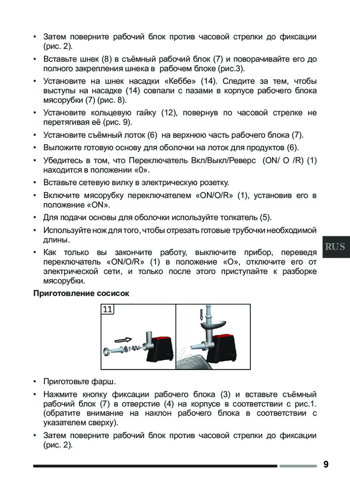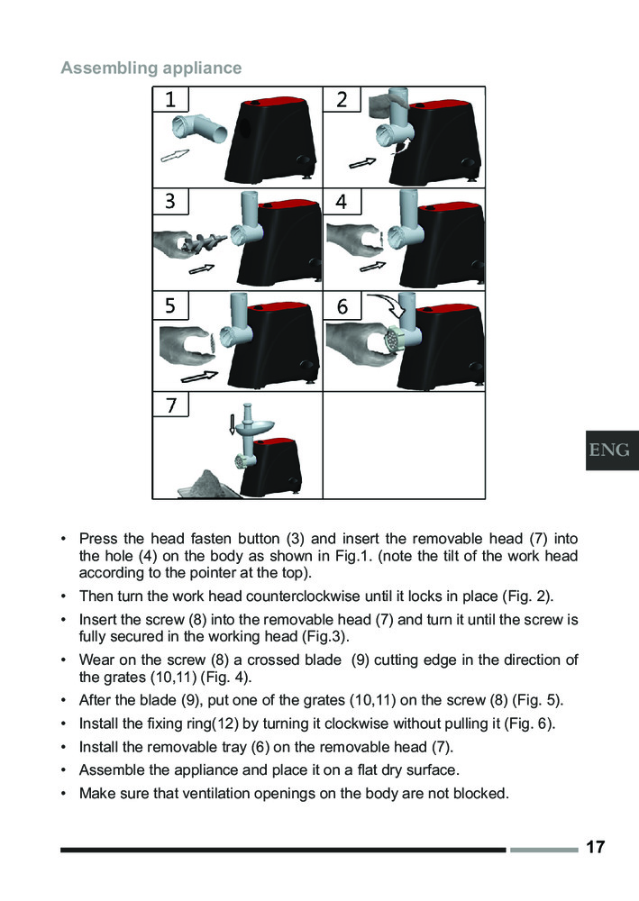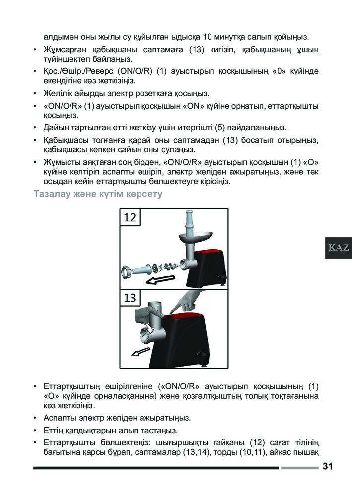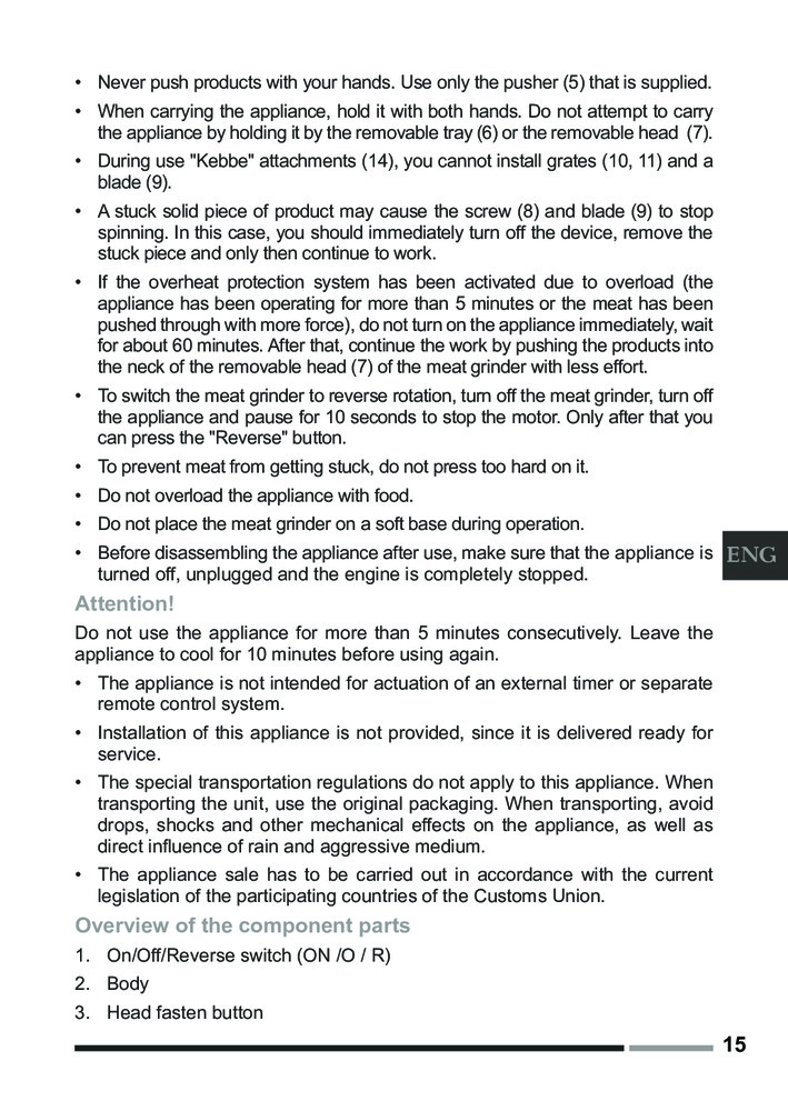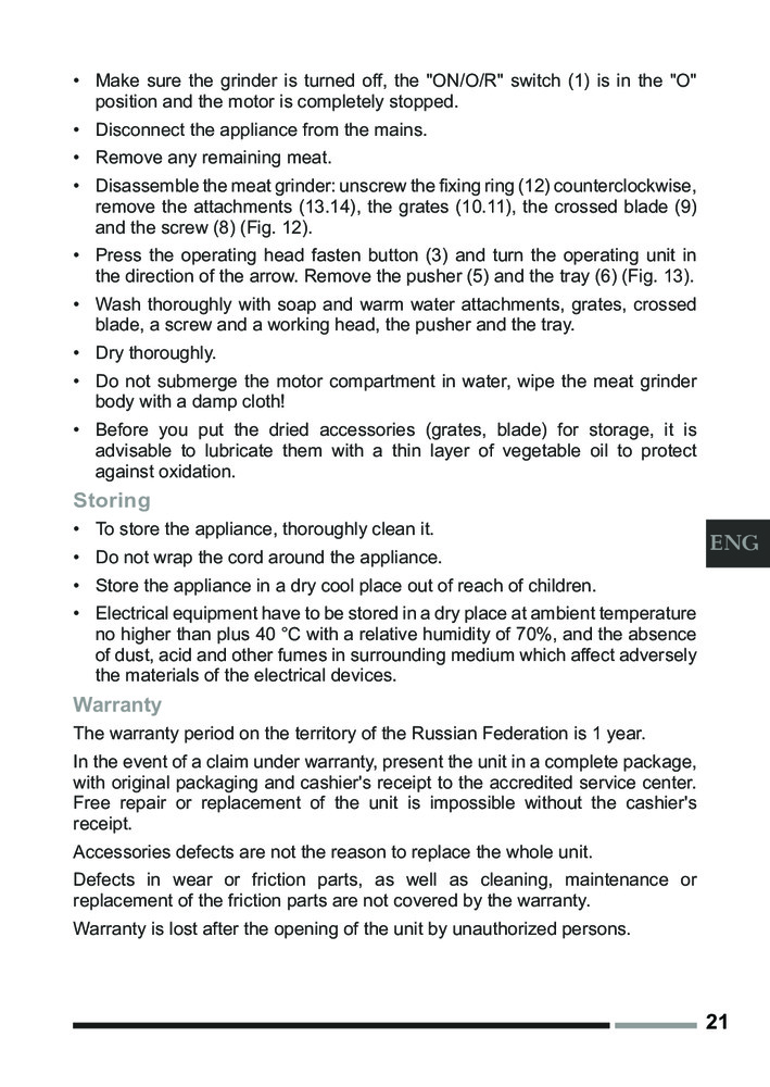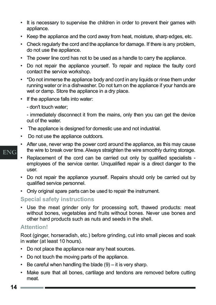 Мясорубка HT-976-004 выполнена из высококачественного пластика, в бордовом цвете — для тех, кто любит нестандартные (классические) цветовые решения на кухне. Максимальная (пиковая) мощность мясорубки составляет 1800 Вт, номинальная 300 Вт. Производительность — 1,8 кг фарша в минуту. Функция реверс (обратный ход) поможет очистить шнек от жил или случайно попавшей косточки. Внутренние детали — шнек, ножи, решетки — сделаны из металла, это плюс, поскольку на них ложится вся нагрузка при работе электрической мясорубки. Имеется защита от перегрева. В комплект поставки входят 2 диска для приготовления фарша, насадки для приготовления кеббе и сосисок.