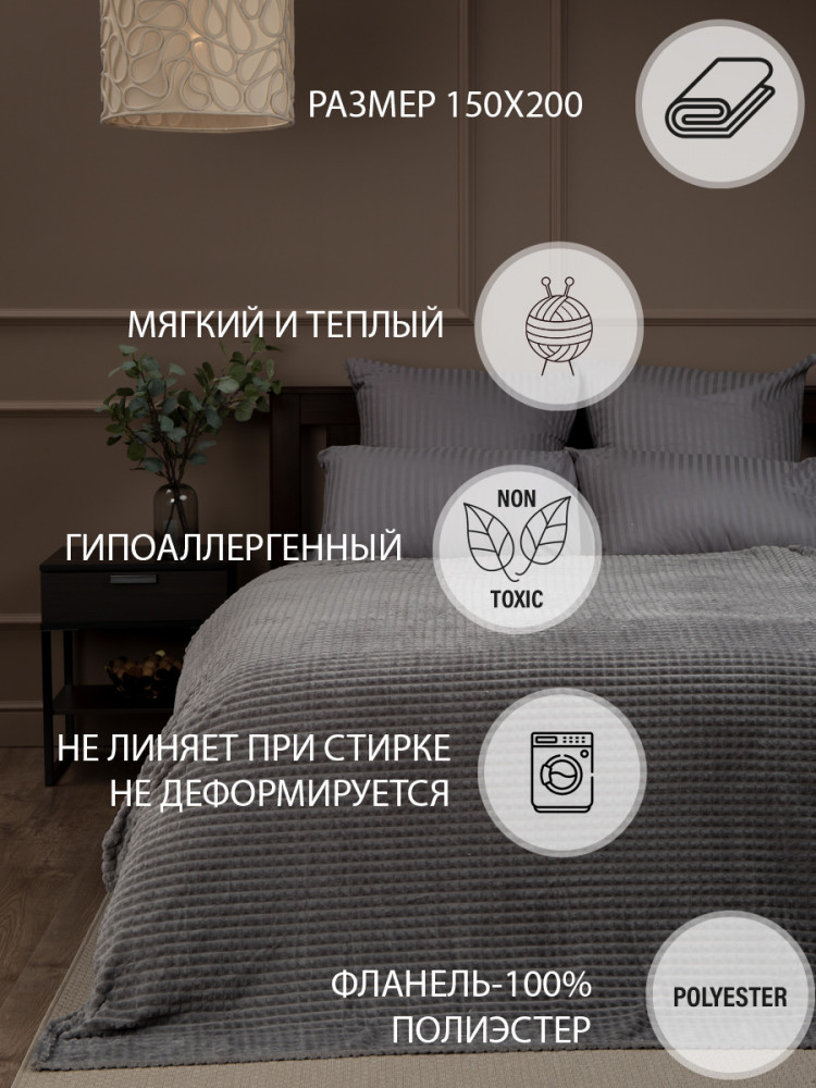 В холодные вечера просто не обойтись без теплого пледа. Плед быстро согреет и сделает пребывание в домашних условиях уютным и комфортным. Благодаря привлекательному дизайну его можно использовать в качестве дополнительного декоративного элемента гостиной или спальни. Может стать прекрасным дополнением интерьера или подарком для родных и близких.