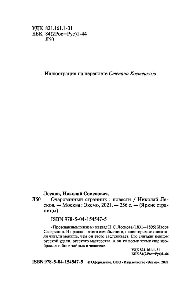 Очарованный странник. ПовестиВ данный момент этот товар отсутствует в продаже. Возможно, у нас найдется аналогичный или похожий товар здесь. Серия: Яркие страницы Этого самобытного, неповторимого писателя читали меньше, чем он этого заслуживает. Его считали певцом русской удали, русского мастерства. А он ко всему этому еще изображал тайное тайных в человеке. |