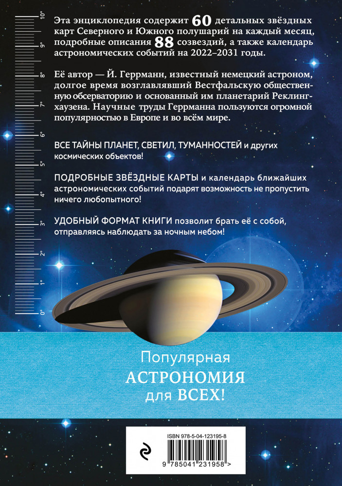 Серия: Атласы и энциклопедии. Иллюстрированный справочник Справочник практических навыков для тех, чьё хобби — астрономия. С помощью этого путеводителя по ночному небу, а также бинокля или небольшого телескопа читатели смогут найти интересующие их звёзды и созвездия, скопления светил, туманности и многое другое. Книга содержит 60 звёздных карт Северного и Южного полушарий по месяцам, подробные описания 88 созвездий, календарь астрономических событий на ближайшее десятилетие, а кроме того, самые интересные сведения о различных космических объектах и процессах. Читатели узнают, что такое циркумполярные созвездия, как выглядят лунные «моря», благодаря чему образовались кратеры Меркурия, получат ответы на многие другие вопросы о тайнах Вселенной. |