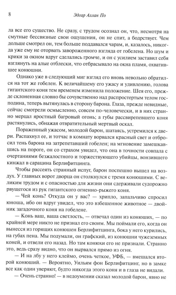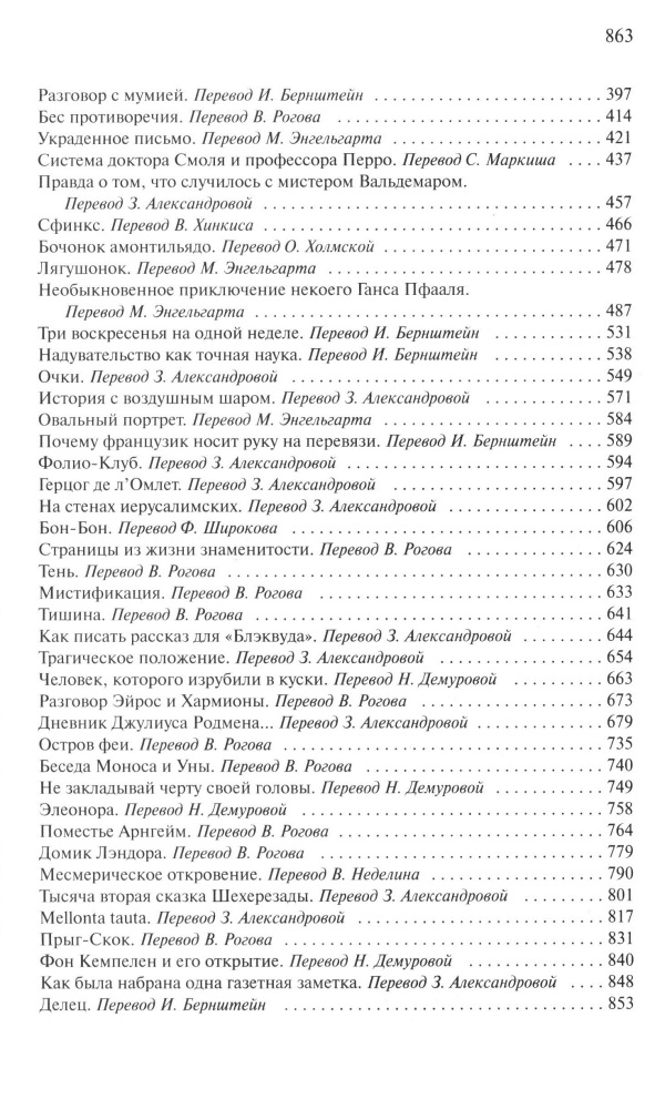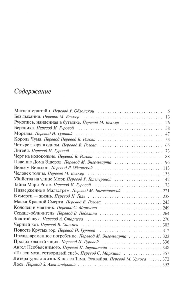 Содержание: Эдгар Аллан По. Метценгерштейн (рассказ, перевод Р. Облонской) Эдгар Аллан По. Без дыхания (рассказ, перевод М. Беккер) Эдгар Аллан По. Рукопись, найденная в бутылке (рассказ, перевод М. Беккер) Эдгар Аллан По. Береника (рассказ, перевод И. Гуровой) Эдгар Аллан По. Морелла (рассказ, перевод И. Гуровой) Эдгар Аллан По. Король Чума (рассказ, перевод В. Рогова) Эдгар Аллан По. Четыре зверя в одном (рассказ, перевод В. Рогова) Эдгар Аллан По. Лигейя (рассказ, перевод И. Гуровой) Эдгар Аллан По. Черт на колокольне (рассказ, перевод В. Рогова) Эдгар Аллан По. Падение Дома Эшеров (рассказ, перевод М. Энгельгардта) Эдгар Аллан По. Вильям Вильсон (рассказ, перевод Р. Облонской) Эдгар Аллан По. Человек толпы (рассказ, перевод М. Беккер) Эдгар Аллан По. Убийства на улице Морг (рассказ, перевод Р. Гальпериной) Эдгар Аллан По. Тайна Мари Роже (рассказ, перевод И. Гуровой) Эдгар Аллан По. Низвержение в Мальстрем (рассказ, перевод М. Богословской) Эдгар Аллан По. В смерти — жизнь (рассказ, перевод Н. Галь) Эдгар Аллан По. Маска Красной Смерти (рассказ, перевод В. Рогова) Эдгар Аллан По. Колодец и маятник (рассказ, перевод С. Маркиша) Эдгар Аллан По. Сердце-обличитель (рассказ, перевод В. Неделина) Эдгар Аллан По. Золотой жук (рассказ, перевод А. Старцева) Эдгар Аллан По. Черный кот (рассказ, перевод В. Хинкиса) Эдгар Аллан По. Повесть Крутых гор (рассказ, перевод И. Гуровой) Эдгар Аллан По. Преждевременное погребение (рассказ, перевод М. Энгельгардта) Эдгар Аллан По. Продолговатый ящик (рассказ, перевод И. Гуровой) Эдгар Аллан По. Ангел Необъяснимого (рассказ, перевод И. Бернштейн) Эдгар Аллан По. "Ты еси муж, сотворивый сие" (рассказ, перевод С. Маркиша) Эдгар Аллан По. Литературная жизнь Какваса Тама, Эсквайра (рассказ, перевод М. Урнова) Эдгар Аллан По. Лось (рассказ, перевод З. Александровой) Эдгар Аллан По. Разговор с мумией (рассказ, перевод И. Бернштейн) Эдгар Аллан По. Бес противоречия (рассказ, перевод В. Рогова) Эдгар Аллан По. Украденное письмо (рассказ, перевод М. Энгельгардта) Эдгар Аллан По. Система доктора Смоля и профессора Перро (рассказ, перевод С. Маркиша) Эдгар Аллан По. Правда о том, что случилось с мистером Вальдемаром (рассказ, перевод З. Александровой) Эдгар Аллан По. Сфинкс (рассказ, перевод В. Хинкиса) Эдгар Аллан По. Бочонок амонтильядо (рассказ, перевод О. Холмской) Эдгар Аллан По. Лягушонок (рассказ, перевод М. Энгельгардта) Эдгар Аллан По. Необыкновенное приключение некоего Ганса Пфааля (рассказ, перевод М. Энгельгардта) Эдгар Аллан По. Три воскресенья на одной неделе (рассказ, перевод И. Бернштейн) Эдгар Аллан По. Надувательство как точная наука (рассказ, перевод И. Бернштейн) Эдгар Аллан По. Очки (рассказ, перевод З. Александровой) Эдгар Аллан По. История с воздушным шаром (рассказ, перевод З. Александровой) Эдгар Аллан По. Овальный портрет (рассказ, перевод М. Энгельгардта) Эдгар Аллан По. Почему французик носит руку на перевязи (рассказ, перевод И. Бернштейн) Эдгар Аллан По. Фолио-Клуб (рассказ, перевод З. Александровой) Эдгар Аллан По. Герцог де л'Омлет (рассказ, перевод З. Александровой) Эдгар Аллан По. На стенах Иерусалимских (рассказ, перевод З. Александровой) Эдгар Аллан По. Бон-Бон (рассказ, перевод Ф. Широкова) Эдгар Аллан По. Страницы из жизни знаменитости (рассказ, перевод В. Рогова) Эдгар Аллан По. Тень (рассказ, перевод В. Рогова) Эдгар Аллан По. Мистификация (рассказ,