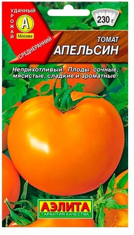 Аэлита Томат «Апельсин»В данный момент этот товар отсутствует в продаже. Возможно, у нас найдется аналогичный или похожий товар здесь. Серия: Удачный урожай Крупноплодный салатный сорт для открытого грунта и теплиц. Среднеранний, от всходов до созревания 108-113 дней. Растения индетерминантные, высотой в теплице 170-190 см. Плоды* массой 180-230 г (отдельные до 400 г), плотные, мясистые, с небольшим количеством семян. Вкусовые качества отличные, томаты сладкие, с повышенным содержанием бета-каротина. Подходят для переработки на сок. Сорт хорошо завязывает плоды даже при неблагоприятных погодных условиях. Устойчив к ряду болезней. Урожайность в теплице — 6-7 кг/м2. Форма плодов может меняться в зависимости от условий.  |