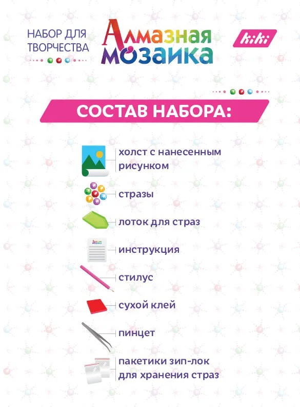 Благодаря специальной обработке страз, мерцающие грани мозаики создают потрясающий вид картины и реалистичность изображения. Созданная Вами работа украсит интерьер дома или станет отличным подарком для родных и друзей.