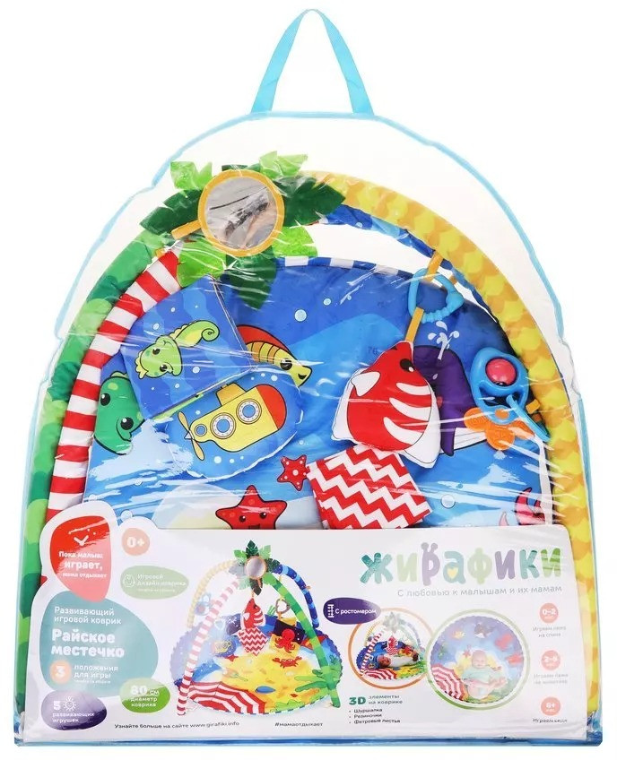 В данный момент этот товар отсутствует в продаже. Возможно, у нас найдется аналогичный или похожий товар здесь. Развивающий игровой коврик «Райское местечко» — это сразу три возможных положения для игры, рассчитанные на разный возраст малыша: