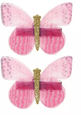 В комплекте 2 зажима, декорированные элементом в виде бабочки. У бабочки розовые крылышки и золотистое тельце.
