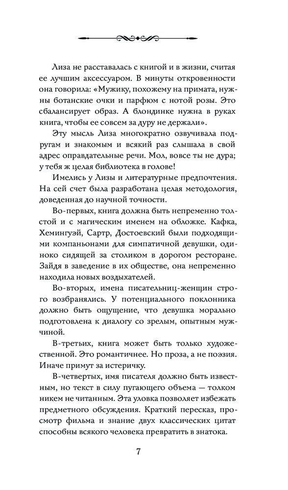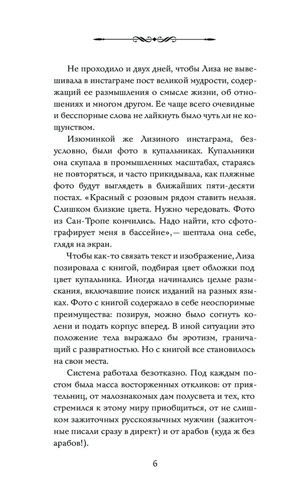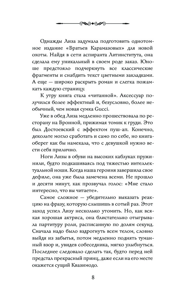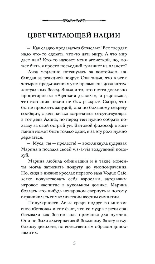 Цвет читающей нацииВ данный момент этот товар отсутствует в продаже. Возможно, у нас найдется аналогичный или похожий товар здесь. Серия: Мастера прозы Нет ничего более манящего, чем наблюдать со стороны за светской жизнью! Роскошной, успешной, изобильной, с дорогими украшениями, нарядами, путешествиями. Герои получают новую роль в фильме, ищут любовь, устраивают вечеринки, разводятся и выходят из депрессии с помощью тренингов. Живут своей обычной жизнью, о которой многим остается только мечтать. Но любое общество неидеально. С помощью страха люди добиваются признания, стареющая светская львица теряет свою красоту, а современное искусство покупают и продают. Автор считает, что только самопознание способно сделать общество лучше. Возможно, каждый из вас в чем-то узнает себя, посмеется над страхами, которые обычно не хочется признавать или просто купит новую сумочку вслед за героиней одной из историй. |