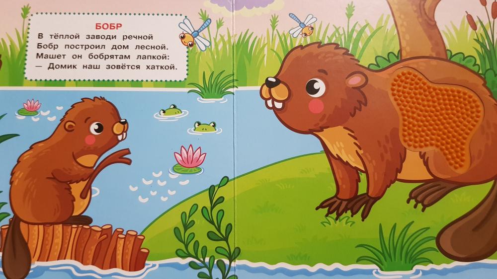 Книжка хорошая, яркая, страницы плотные из толстого картона, иллюстрации очень красивые! Сняла 1 звезду за то, что тактильные вставки все из одного материала (возможно силикон) хоть и с разными поверхностям, но из 8-ми страниц только 3 с тактильными вставками!