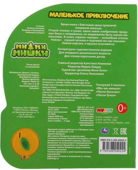 Музыкальная книга «Ми-ми-мишки. Маленькое приключение» ТМ «УМка» — отличный подарок для маленьких поклонников мультсериала про весёлых медвежат: