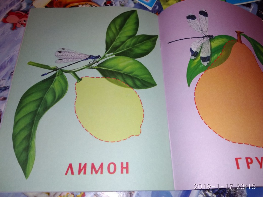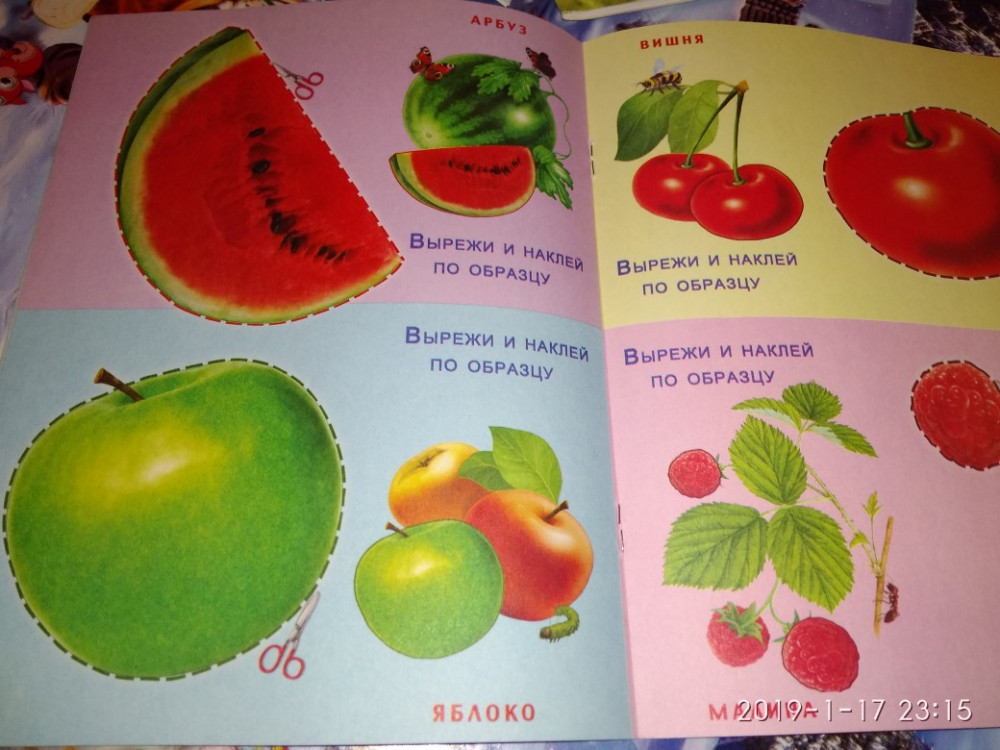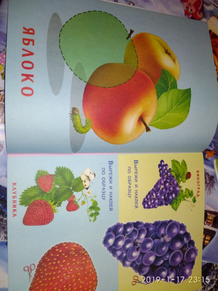 5 звёзд! Отличная аппликация для деток! Сама картинка и вырезаемый фрукт расположены на разных страницах, для удобства вырезания. Цвета достаточно яркие