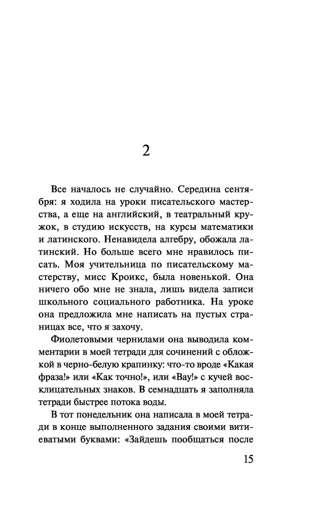 Эта книга меня очень удивила. Глубиной и искренностью. Некая Обратная сторона Лолиты. Каждой девочке, девушке и женщине надо прочитать это небольшое по объему произведение. Здесь поднимаются важные темы о насилии, депрессии, собственных чувствах и простой жизни. Если у меня будет дочь, я многому ее научу и когда-нибудь дам в руки эту книгу, чтобы она училась делать свои собственные выводы о возможных взаимоотношениях.