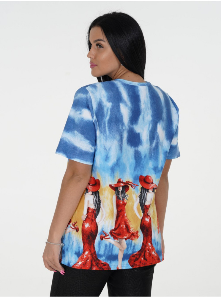 Брала на размер больше, посвободнее люблю, не так видны дефекты фигуры. На невысокий рост длинновата, но не критично. Материал плотный, на жаркое лето не пойдет, хорошо для дома. Постирала, футболка не изменилась, не перекосились швы, принт стойкий. Цена нормальная. Спасибо за товар и доставку.